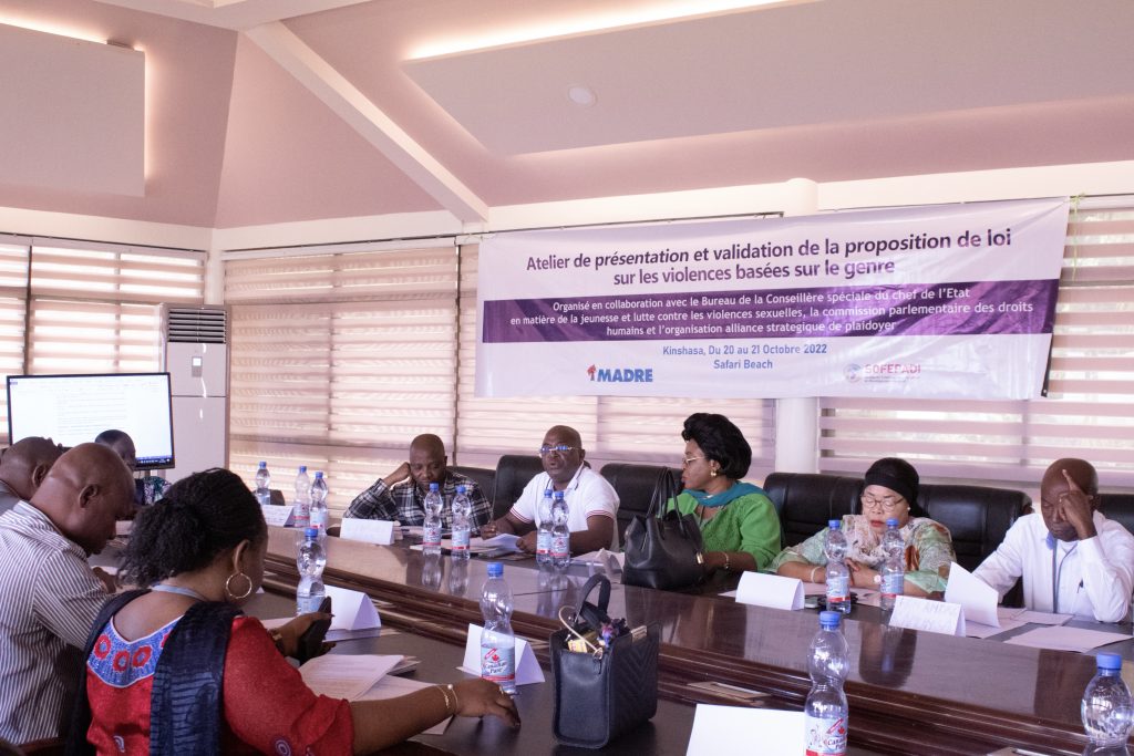 Avec l’appui financier de MADRE, la Solidarité Féminine pour la Paix et le Développement Intégral (SOFEPADI), en collaboration avec le bureau de la conseillère spéciale du Chef de l’État en matière de la jeunesse et lutte contre les violences basées sur le genre (VBG), a organisé du 20 au 21 octobre à « Safari Beach » dans la commune de N’Sele, un atelier de présentation et de validation de la proposition de loi sur les violences basées sur le Genre en RDC.